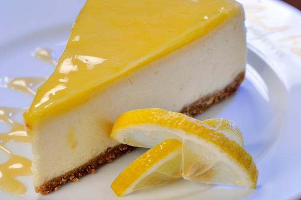 - Smeer hier voorzichtig een laagje lemon curd overheen en decoreer de taart met frambozen of andere vruchten.